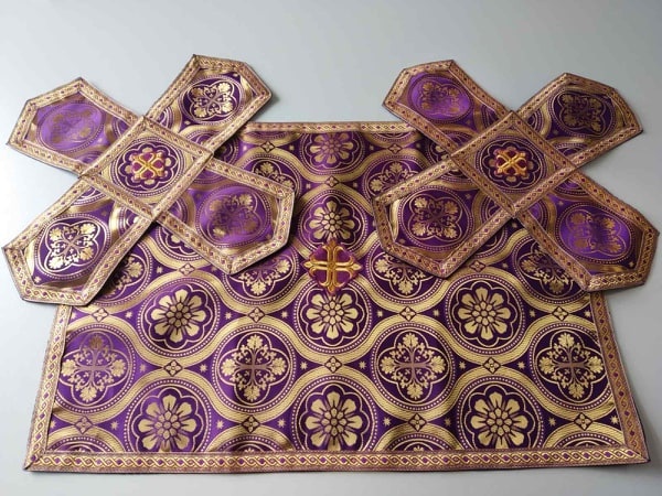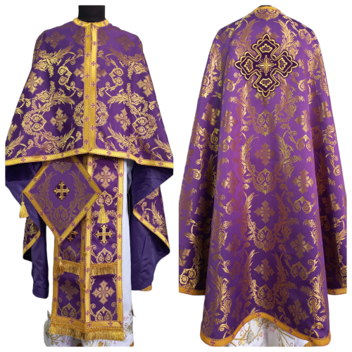 У комплект входять: фелон, епітрахиль, нарукавники, пояс, покрівці, набедреник, палиця.