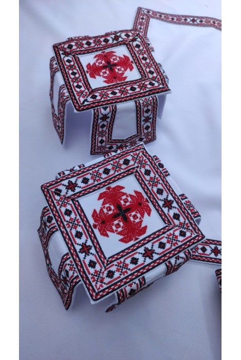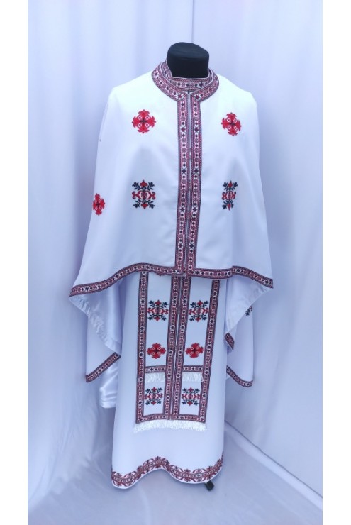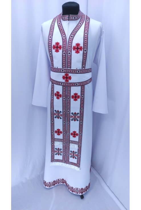 - У комплект входять: фелонь(верхня риза), поручі, епітрахиль, покрівці, пояс, підризник.