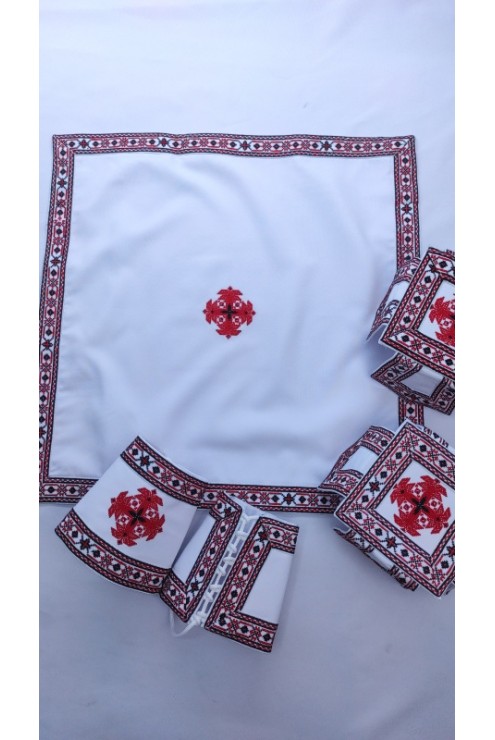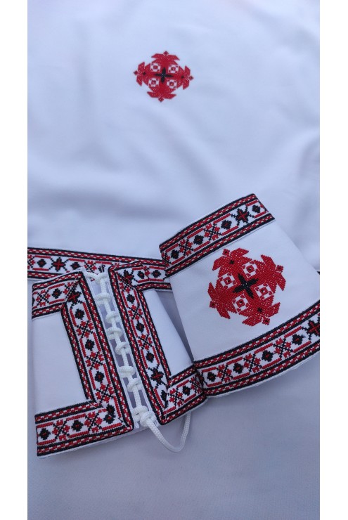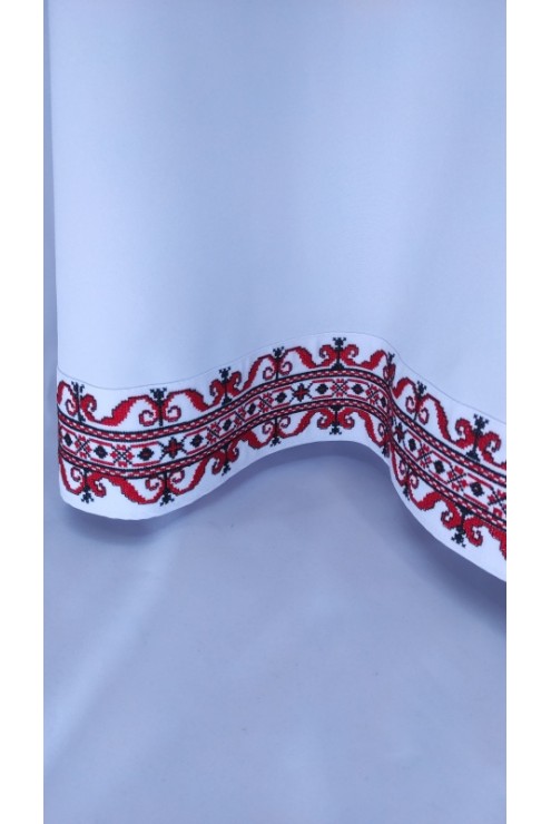 - Тканина габардин, вишивка виконана в червоно-чорних тонах.