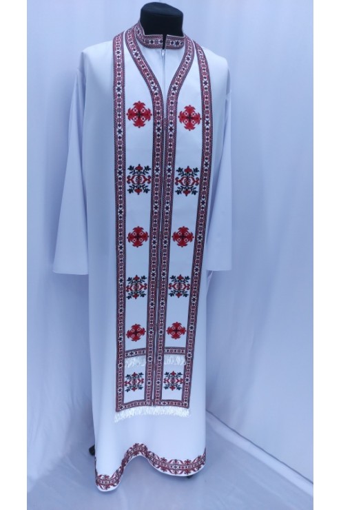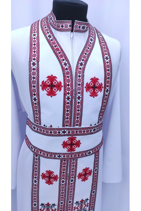 - Орнамент – рослинний упереміш з хрестами – нанесений на всю поверхню священицького одягу.